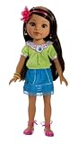 Capture the colorful warmth of Mexico with our Consuelo doll! Like all Hearts For Hearts Girls dolls, Consuelo stands 14 inches high and has a poseable, smooth vinyl body, and high-quality rooted hair for hours of doll play. Her hair is a waist-length fall of shining black and her eyes are deep brown with copper highlights. Consuelo is dressed in a ruffled, lace-trimmed turquoise skirt and a lime-green blouse with lively floral embroidery on the collar. She comes with a hair comb, a girl-sized heart charm bracelet, and a mini storybook about her life. Discover the other beautiful Hearts For Hearts dolls: Dell (USA), Lilian (Belarus), Rahel (Ethiopia), Nahji (India), and Tipi (Laos). Each doll is a girl that wants to make a difference in her life and community. When you buy a Hearts For Hearts Girls doll, a portion of the purchase price is donated to children's causes in those countries through World Vision, a global humanitarian organization. Quality details such as ethnic jewelry and
